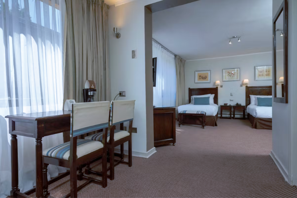 Express ( 1 persona, 20 m2 ) Standar ( 2 personas, 40 m2 ) Superior ( 2 personas, 40 m2 ) Superior Twin ( 2 personas, 40 m2 ) Junior Suite ( 2 personas, 50 m2 ) Junior Suite Twin ( 4 personas, 50 m2 ) Desayuno Incluido Teléfono TV Cable Internet Aire Acondicionado FrigoBar Caja Fuerte Despertador Secador Pelo